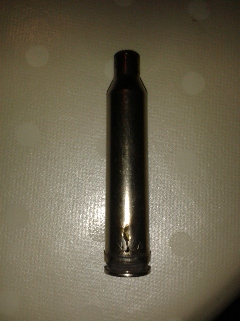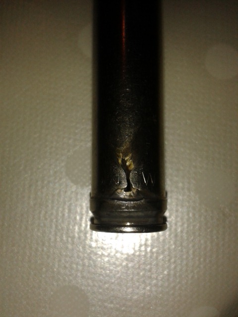 Un amigo acostumbrado a comprar munición, de oferta. Me comento que en un rececho utilizando estas balas y un rifle de cerrojo Tikka, en el primer disparo noto como le saltaba a la cara, pólvora o un fogonazo, por la parte de atrás del cerrojo. Y comprobó que la vaina estaba rota por su parte inferior.
