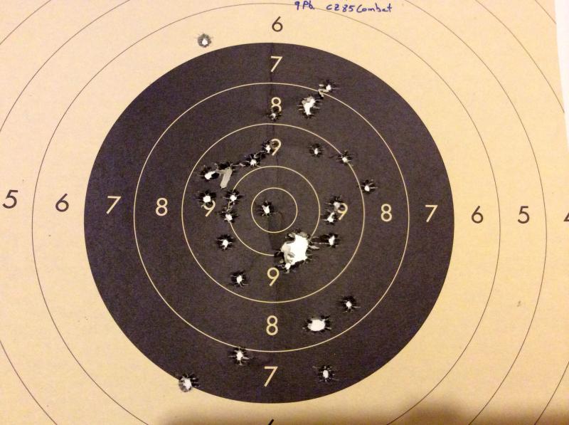 En mi caso recargo 3,5/3,7 OA y cota 28,10 con Cz 85 Combat y puntas Rn 124 gn de aleación fundidas por mi y estos son algunos de los resultados con 0 emplome. Espero seguir divirtiendome y agrupando algo mejor.