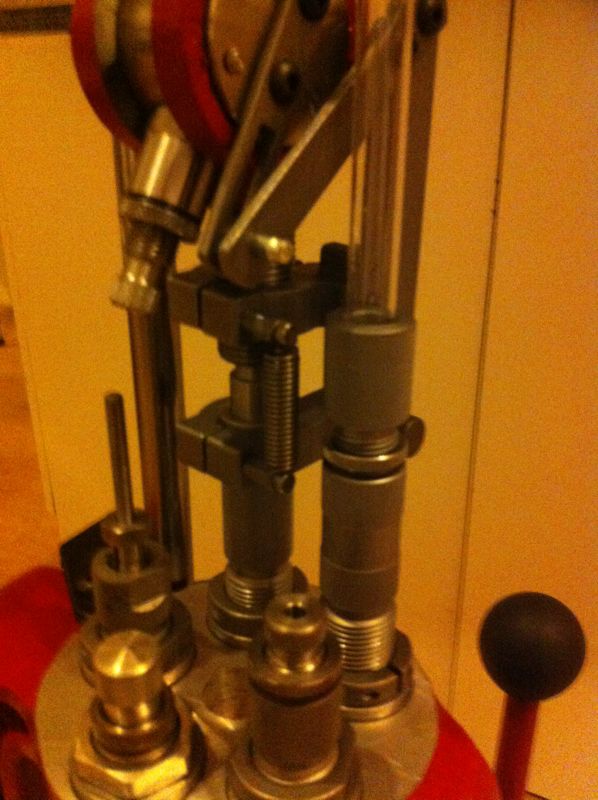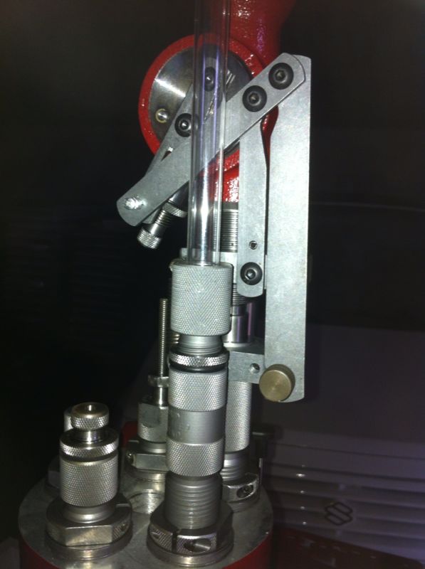 La que tienes y una 650 son similares, a grandes rasgos la unica diferencia en su funcionamiento es el tipo de dosificador que llevan y que la azul se le cambia el cabezal entero y eso es una ayuda enorme cuando se recargan varios calibres, tener los cabezales totalmente montados simplifica mucho la cosa y no tienes que estar graduando una y otra vez el dosificador, que por cierto al ser de tambor es propenso a no funcionar bien con polvoras tipo optima a y su graduación a base de tornillo es entretenida, el tipo de barra de dillon es mas facil de graduar y funciona muy bien con las polvoras tipo papelitos, que hay que comprarlos es verdad, pero si se lo puede permitir el propietario de la maquina es lo mejor que puede hacer.
