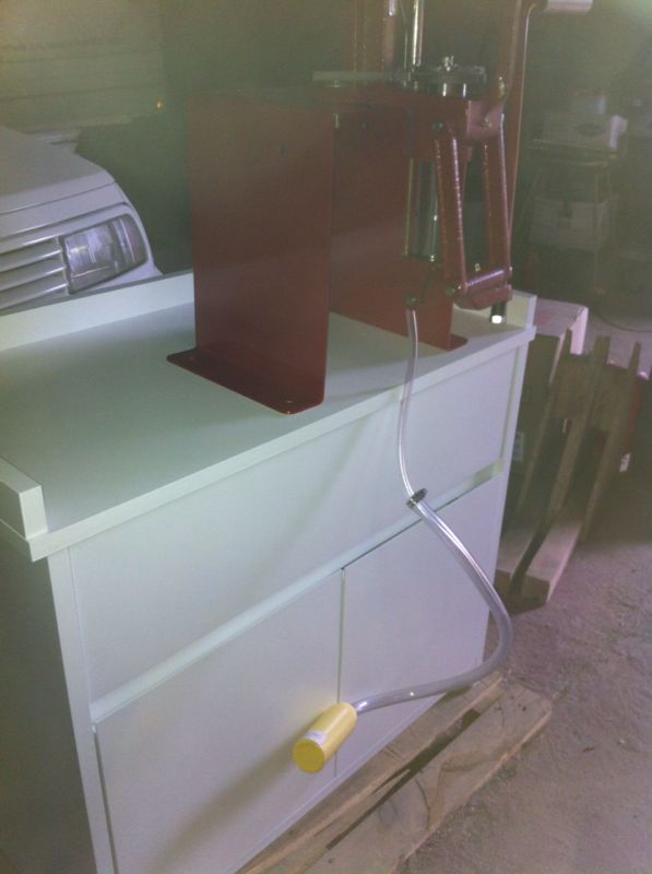 Ya tengo casi terminado el mueble y he pintado la base y la manivela , que le habia comprado a Mostercollator para la Dylon desde hace meses, de color rojo ....igual que la prensa....