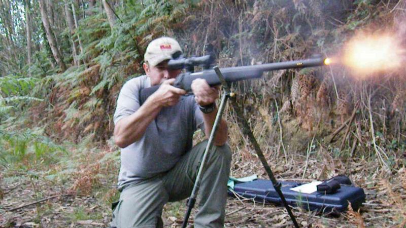 Un fotograma,sacado de un video,de un disparo de Remington Accutip sabot con la Mossberg 695.