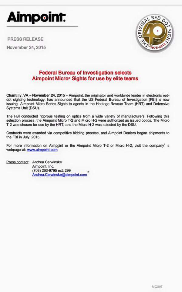 Pues eso que los FBI de los USA firman un contrato de suministro con Aimpoint. Saludos