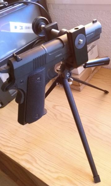 Pero lo bueno además, con el mismo soporte y el trípode original del telescopio, se puede montar un trípode de tiro para sujetar la pistola :mrgreen: :mrgreen: