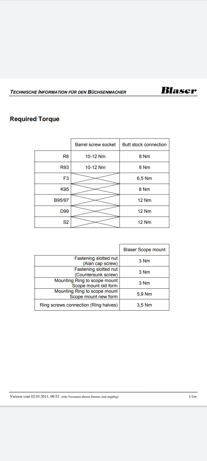 Sabéis el par de apriete recomendado de las anillas Blaser, para montaje con llave dinamométrica?