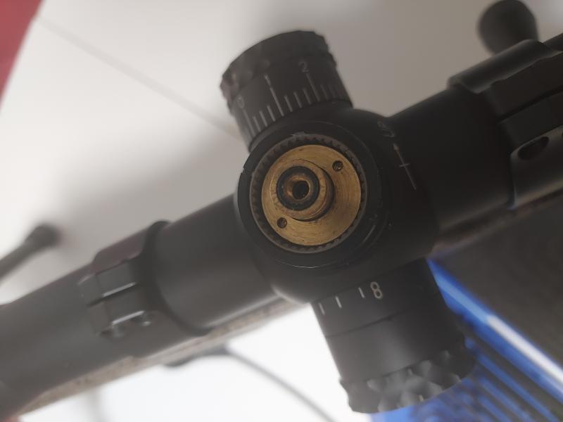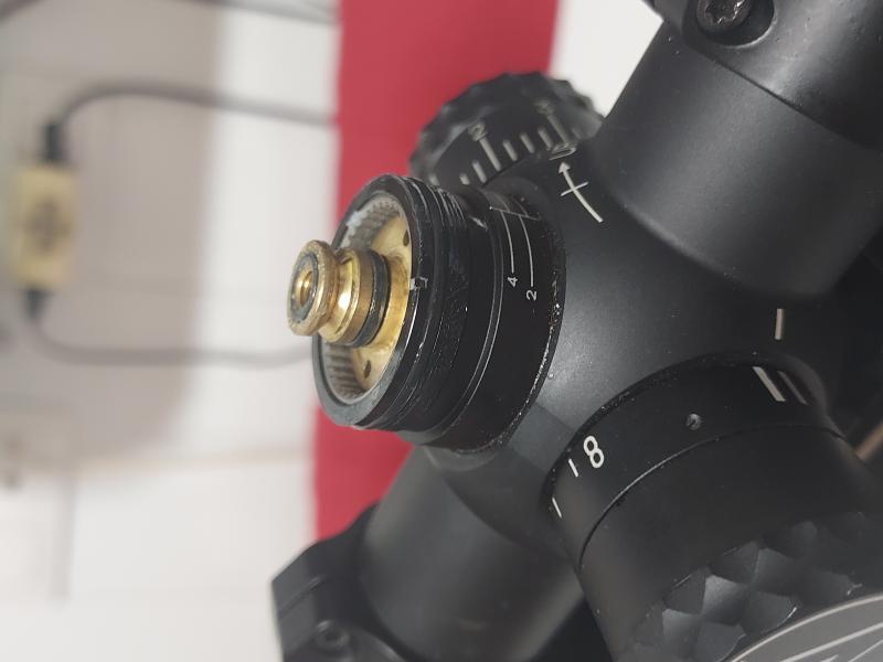 Según entiendo lo que quieres decir es que una vez que tengamos el visor a tiro a la distancia que estimemos, hay que desmontar la tapa de la torreta, aflojar esos 4 tornillos allen y entiendo que esa rueda que queda en la parte superior una vez desmontada la tapa, hay que girarla hasta que haga tope con la de abajo y en ese momento volvemos a apretar los cuatro tornillitos de Allen.