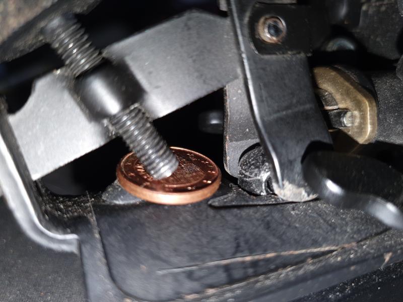 Tornillo y tuerca M2 para sustituir el trozo de muelle que soporta el brazo del tornillo de tensión del rail.