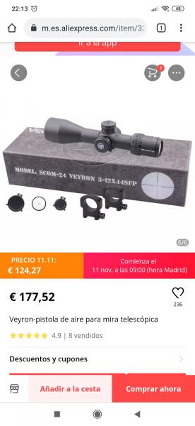 El visor lo compre en AliExpress, copia zeiss x24, estaba en oferta...no vaya a ser que no llegue.