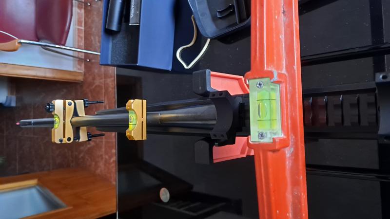 Te aconsejo, más que los niveles, porque con una plomada te sirve de sobra para sacar la vertical de la cruz, el destornillador dinamométrico. Llamas o mandas correo a Bergara y ellos te dirán a qué par debes apretar el carril y los tornillos de la culata si te decides a desmontarla para limpiarlo. Yo lo hice así con el Tikka mandando correo a BBI. Los pares de apriente son importantísimos, tanto para la precisión como para no excederte y cascar el tubo del visor. Y te da la seguridad de saber que todo está igual apretado y seguro. Es un pelin caro pero lo tienes de por vida y ante la menor duda de algún golpe, de mucho uso o cualquier otra cosa, con repasarlos te sobra y te aseguras.
