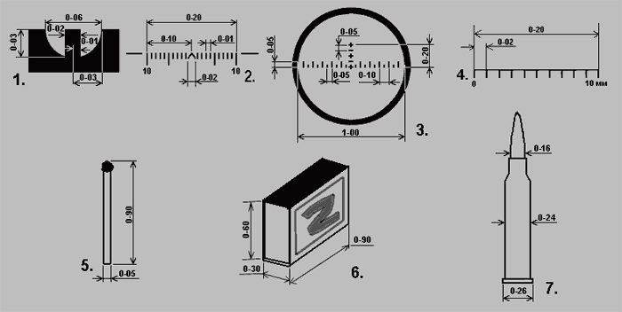 como sacar distancias sin telémetro ni miras con sustentación, bien aqui algo de la instrucción rusa para estos casos, el cartucho es 7,62x54r y hay que poner los objetos a 50 centímetros del ojo.