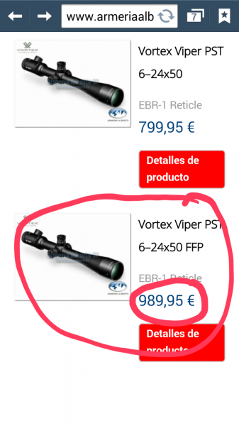 El Viper PST 6-24x50 FFP en USA si cuesta casi 1000$. Buscando bien por ahí lo encuentras a veces en oferta por poco mas de 900 pero lo normal suele ser 950-980$.