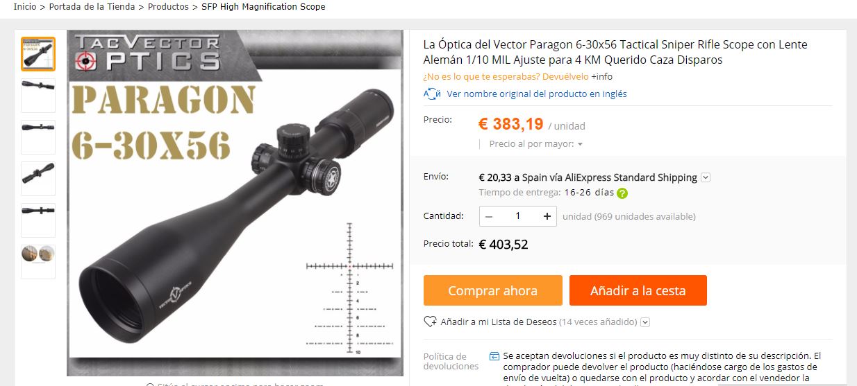 El visor vector paragon 6-30x56 en aliexpress sale a 200€ con envío comprando 3.