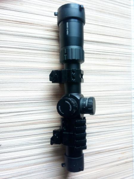 Yo tengo esta retícula Mil-dot en un visor de 1,2-6x24 y con el visor puesto en 6x permite calcular la distancia de forma bastante precisa.