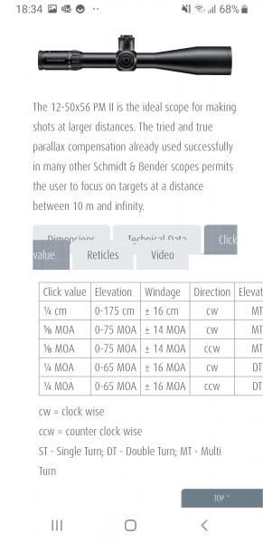 Te paso la corrección total de un SCHIMDT BENDER 12-50x56. Ni mucho menos corrige las 100 moas del DELTA.
