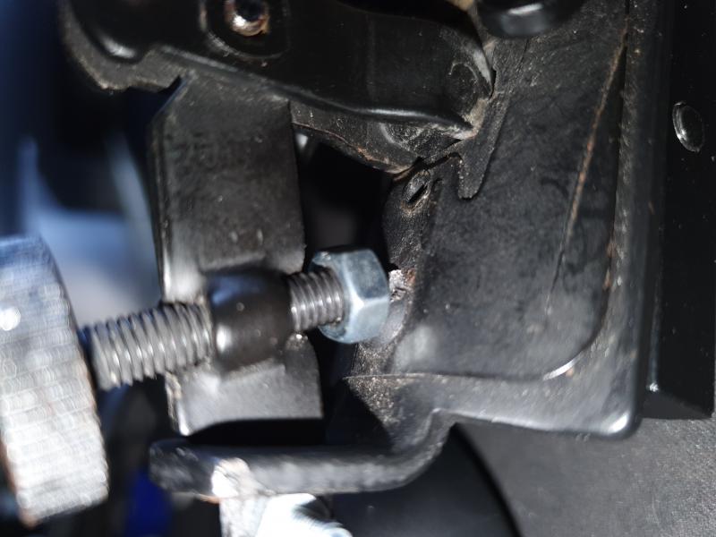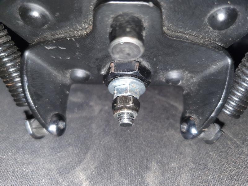 Tuerca y contra tuerca para ajustar la tensión hasta que no bascule la bandeja - lo que harás tu con la tuerca de palanca.