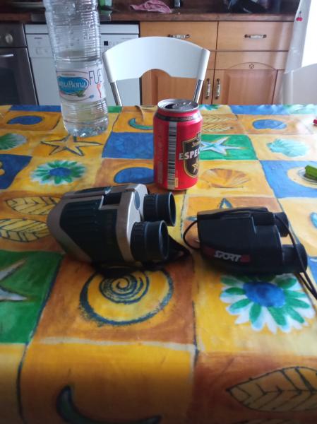 Por mi parte tengo estos del Decathlon, de 10 aumentos con ajuste de foco y dioptrías, que para su precio se ven realmente bien, con tamaño contenido y peso muy ligero: