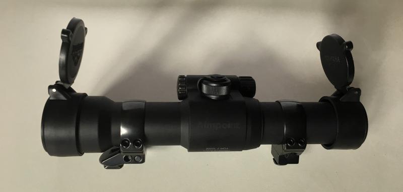 Este es uno de ellos y los otros dos no exactamente pero similares. Para mí tienen la ventaja que su contorno es mucho más reducido por lo que en el momento de apuntar ni ves su estructura. Prácticamente desaparece de la visión. Y también tienen la ventaja de un precio entre 150 y 200 €. El pobre Aimpoint se aburre en al armario.