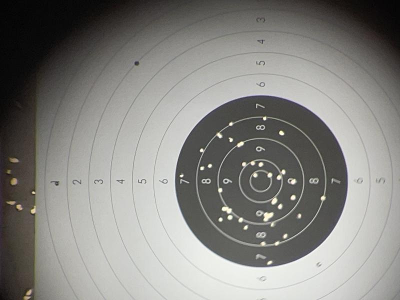 -Sin tener en cuenta el crono, realizo todos los disparos sobre la misma diana con la intensión de que no salgan de la zona negra. A día de hoy no he conseguido meter dentro el 100% de los disparos, siempre hay dos o tres que se quedan fuera.