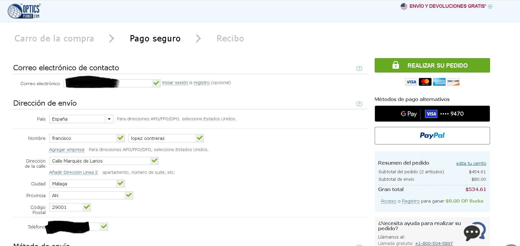 y hice la simulacion del pedido sin tener cuenta y tambien me lo envia