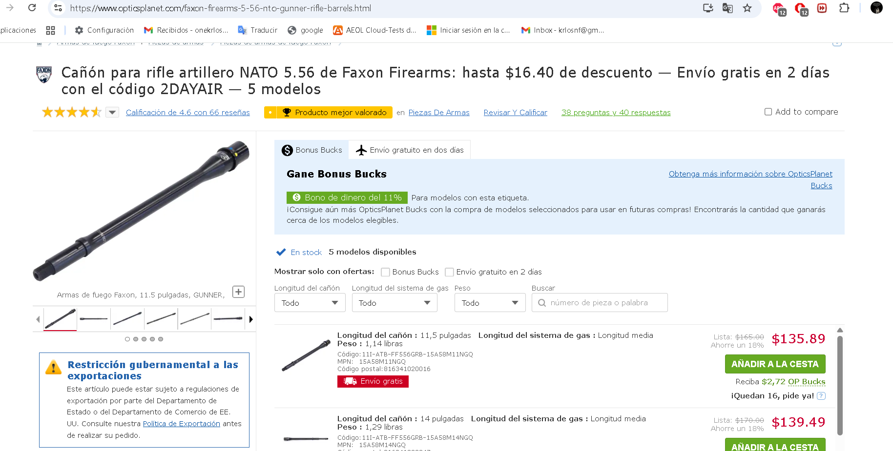 jmbcl1911 escribió:Si , lo he intentado en optics planet, pero al añadirlo al carrito me salta un aviso que dice lo siguiente.