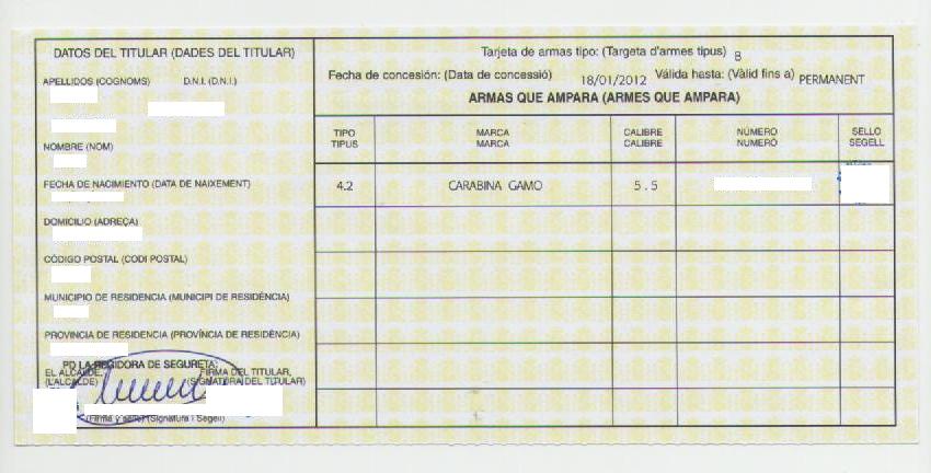 Atencion es una targeta de armas, no una licencia porque para armas de AC no es preciso ninguna licencia, ya te colgare una imagen de la mia para que veas como es