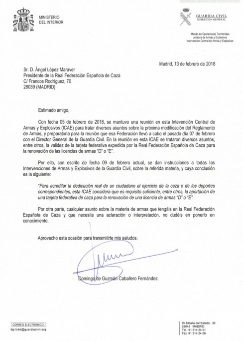 Luego a los 5 años cuando vas a renovar, ese mismo año de la renovacion te sacas la licencia de caza o la licencia federativa de caza o tiro y ya está. Es resto de los años no es necesario, solo te piden la del año que renuevas.
