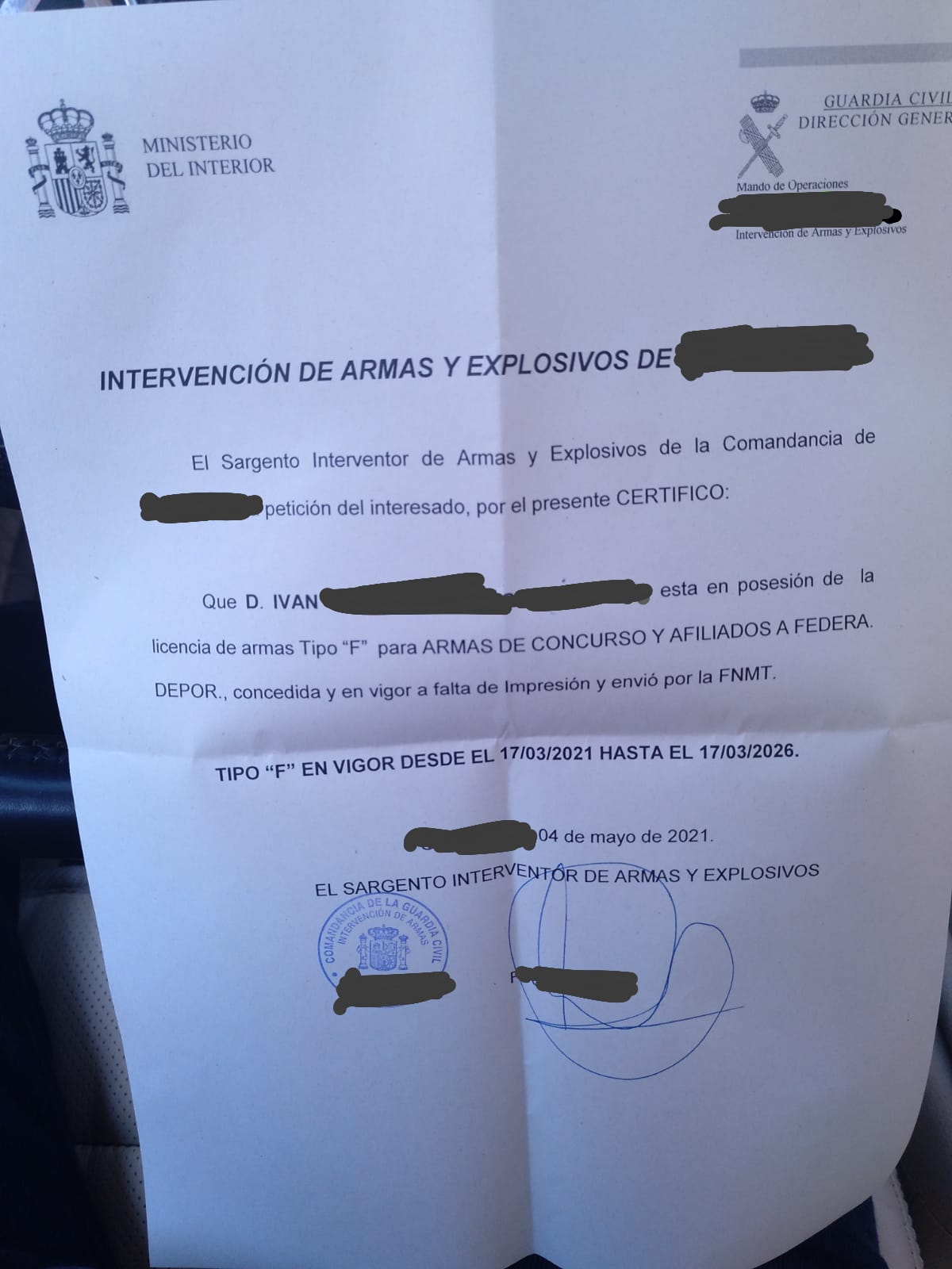 como 40 o 60.000, que me parecen muchas) fui a la IA un tiempo despues, les dije que iba a realizar un curso (IPSC) y que necesitaba justificar que tenia la licencia concedida porque salen pocos y es un coñazo y despues de dar la turra un rato, me dieron el papel.