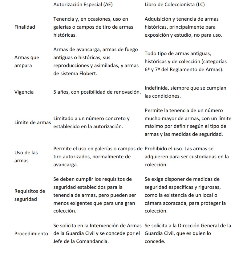 En resumen, la normativa española diferencia entre la simple posesión de objetos de colección (LC, vigencia indefinida) y la autorización para el uso activo de armas (licencias con validez temporal y requisito de reconocimiento médico periódico).