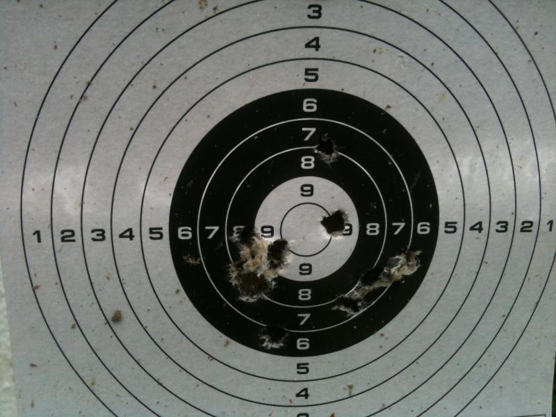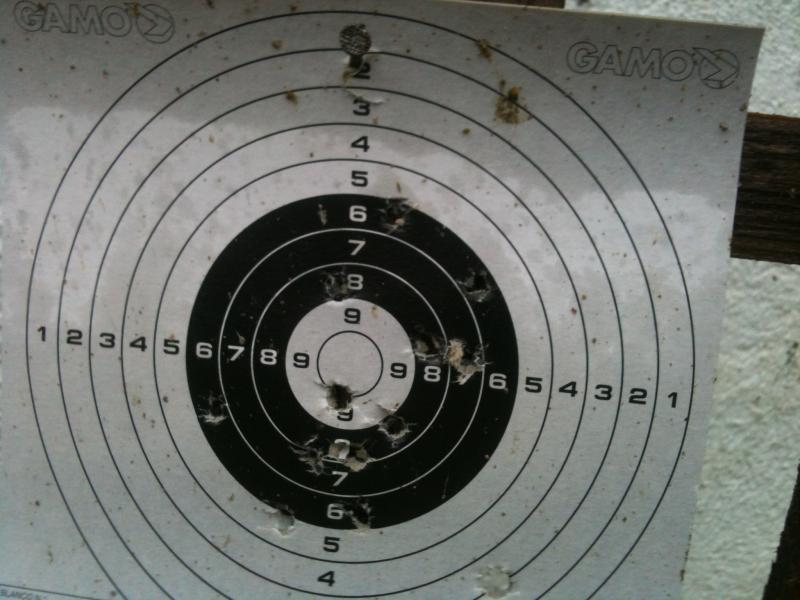 Pongo unas fotos de las dianas k hice ayer, hay una cosa k no entiendo, en el suelo puse chinos del tamaño de una moneda de 0,05 cent el k más y los partia del primer disparo, sin embargo a las dianas a la mism adistancia un metro del suelo no pude hacer ni un solo 10
