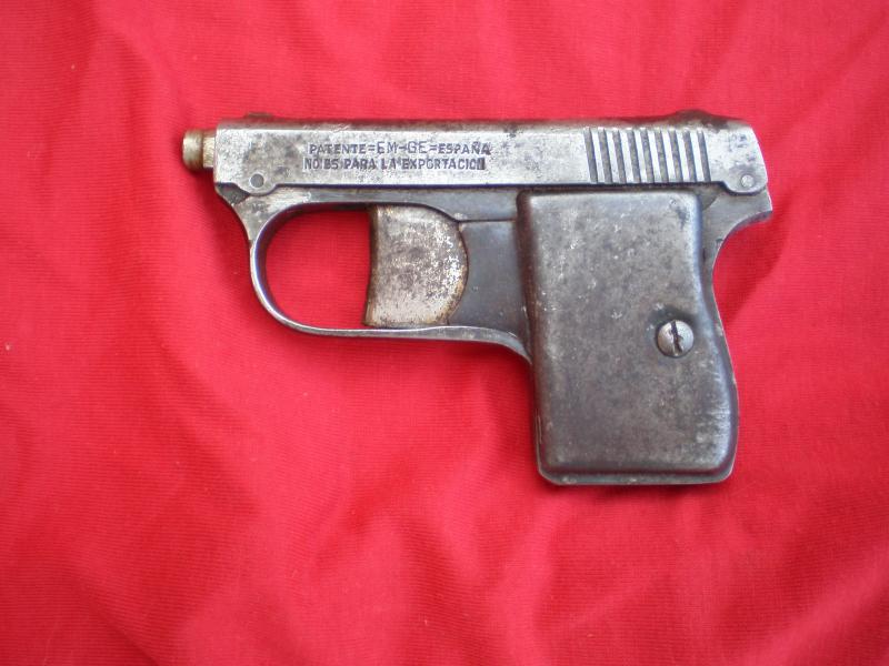 Esta pistola espantaperros y similares presentan yo diría que aspectos muy diferentes a las reales, y por tanto no es al menos tan fácil la confusión por su aspecto, aunque quizá se podría dar, y por otra parte, los pistones están orientados de manera perpendicular al cañon, en ese pequeño cargadorcito que se mete por la parte frontal del arma, bajo el cañon, y que a medida que se va disparando, sale por la parte trasera. Es absolutamente imposible manipularla para disparar nada.