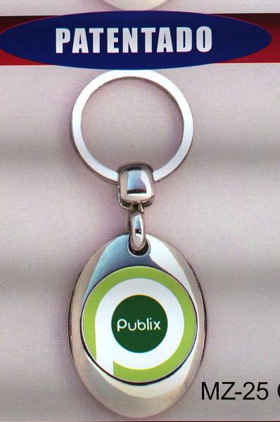 Los llaveros son de nikel con anagrama y en el reveso incluye una ficha redonda, para carro de la compra.