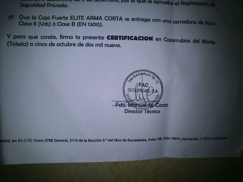 Buenas, el miercoles llame a mi IA para informarme y me dijeron que era necesario usar un impreso que tenian ellos para la compra del vichoso armero y que la compra se tenia que hacer alli mismo!!! Sin pensarmelo 2 veces me pido la mañana libre y me presento en mi intervencion, le explico al caballero que el armero esta a 800km y el vendedor tambien y que tengo los papeles escaneados en mi poder para que si es tan amable de mirarlos para evitarme asi mas problemas, despues de revisarlos me dice que no estan bien que tengo que tener los papeles de los ensayos firmados por el laboratorio y en original, me da un contrato de compra venta normal y coriente que no es ningun impreso o algo del otro mundo y me dice que todo bien rellenado y firmado ay que acompañarlo de fotocopia dni, certificado de homologacion del fabricante y laboratorio en original, resultado de los ensayos, factura de compra original y el ingreso del importe de la compra de la caja fuerte. Tambien menciono que en el momento de tenerla tengo ponerlo en conocimiento de ellos. Es normal esto? Tantos papeles para un armero? Cuando compre mi revolver en este foro al no tener armero lo tengo en casa de un amigo y me acuerdo que el unico papel que enseño mi amigo fue un certificado del fabricante como que su armero que antes era grado D ahora es grado 4, aparte su dni , licencia y el ingreso para la guia, ni facturas ni leches. El lunes me llegara el armero y el martes voy a ir a la IA para poner el revolver a mi nombre aver que pasa, lo mismo no me ponen pega alguna o a lo mejor voy a tener que pedir algun permiso especial a medio ambiente o a la NASA como que el armero no contamina y que a estado en la luna jejeje.