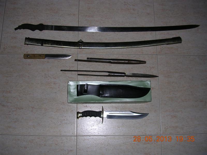 El día 28 próximo pasado me llegó por medio de MRW un regalo que me ha hecho un forero de esta página, se trata de una hoja de sable sellada ARTILLERIA FABRICA DE TOLEDO, una vaina metalica, un Bowie Muela, una punta de lanza de Caballería con el regatón sellada FCA. DE TOLEDO 1875 y un cuchillo PUMA, sellado ORIGINAL PUMA PT. NO. 6317 GERMANY DARBEIT FHARTENMESSER, según he averiguado en la red es un modelo de 1964, solo hace falta pulirle algo el filo y perfecto.