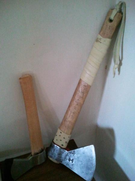 Hola , este es mi primer post en el foro, y leyendo el hilo de el forero Tipet sobre unos cuchillos cds y cudeman se comenta sobre un hacha comedida y como he tuneao una de 250 gr de flores cortes de inox os la enseño, un hachita asi muy afilada sirve hasta para sacar filetes y no da tanto el cante como un pedazo de cuchillo de 20cm de hoja. Os enseño como era cuando la recibí ,(al lado de la mas añeja que tengo), y como la he puesto, el mango mide 33 cm .