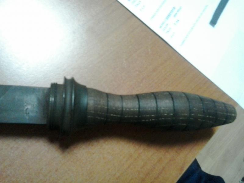 Yo creo que la funda se hizo después de recortar la bayoneta, al menos a mi no me cuadra esa funda ni el tahali, pero a saber.
