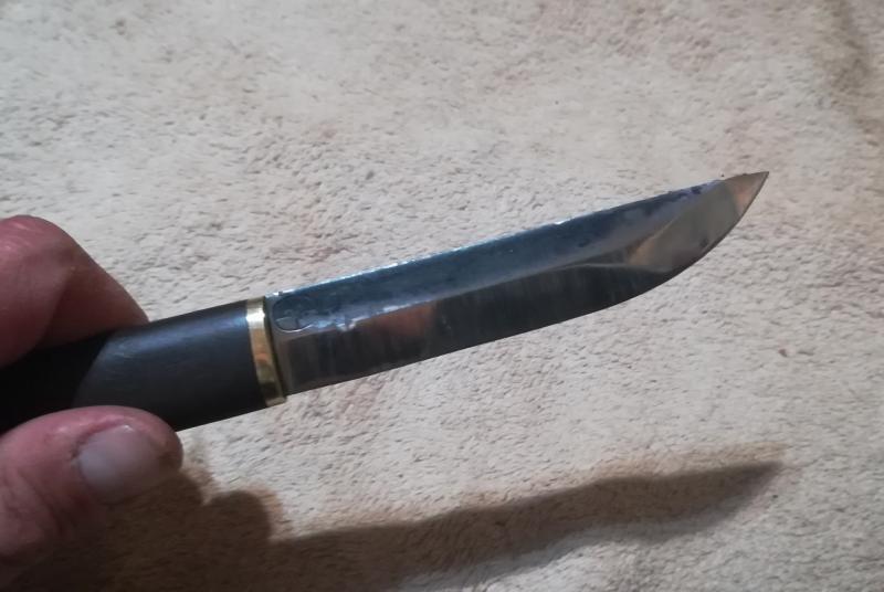 Hola de nuevo. He encabado esta hoja de puukko de 10 cm en madera de abedul.