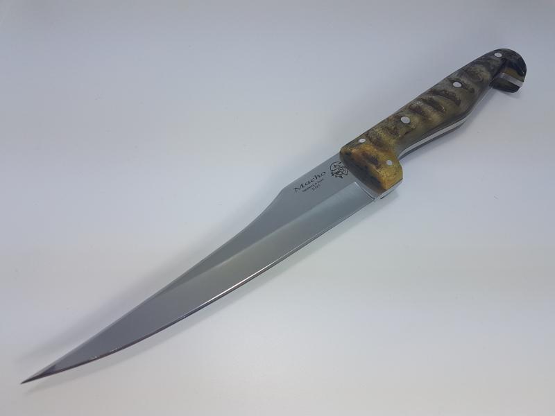 la vaina parece de madera forrada con dos finas chapas que empiezan a tener desperfectos donde se unen, la chapa se ve decorada solo por un lado, y parece que tiene soldadas dos anillas, por eso pienso que puede ser algo hecho para colgar en una pared. He sacado foto a lo que me parecen soldaduras, la parte superior de la empuñadura vuelve a tener un embellecedor de la misma chapa que parece soldado también. En la hoja vienen unas espigas distintas a cada lado.
