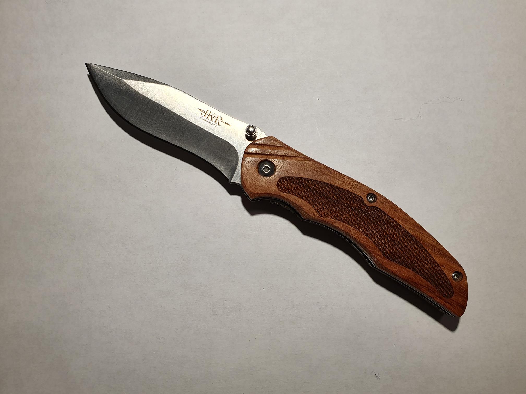 Pero me parece que esta vez, he acertado... se trata de una navaja JKR de Joker, la línea de básicos de esta marca. El modelo lo denominan "Navaja Deportiva JKR0648 Madera ", y la verdad, es lo que buscaba.