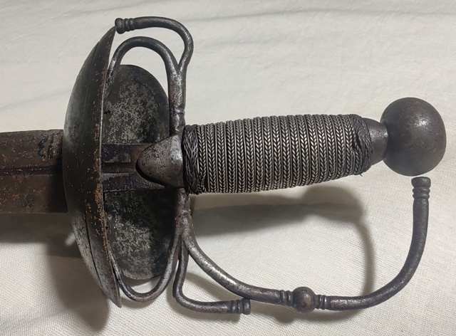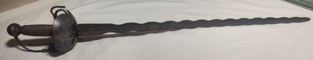 Poco más que decir. La guarnición, aunque maltrecha, es para un oficial, y eso implica que había mucho más margen para los caprichos del propietario, y si quería una hoja flamígera, ¿por qué no?