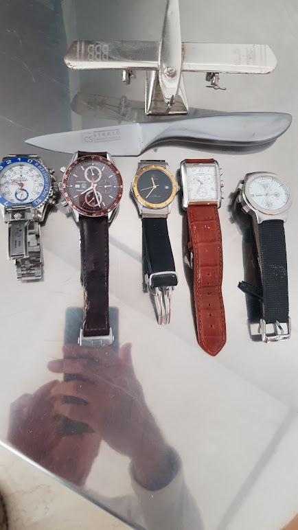 Reloj lotus que lleva conmigo un montón de años, normalito, y navaja del Lidl comprada ayer mismo.