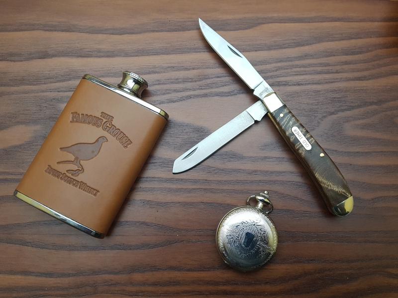 El reloj es una baratija sin valor, y la navaja una (bonita) copia china de una "trapper", pero me gusta la foto.