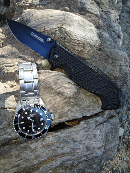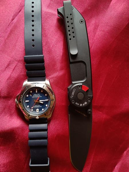 Reloj lotus que lleva conmigo un montón de años, normalito, y navaja del Lidl comprada ayer mismo.
