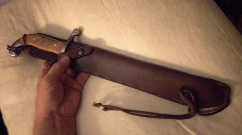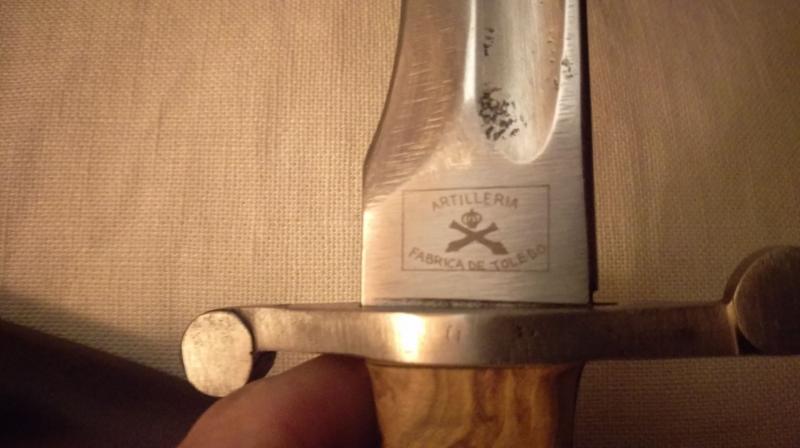 Al estar en ese estado, de poco o nulo valor de colección, pensé en hacer algo parecido, ponerle unas cachas decentes y hacerle una vaina, pero entre que me dio pereza, y que no me fiaba demasiado del resultado de la soldadura para machetear, lo dejé pasar. No aprecio en tu caso si la hoja esta íntegra o es una de éstas, soldadas. A veces no es fácil distinguirlas, si luego las han pulido bien.