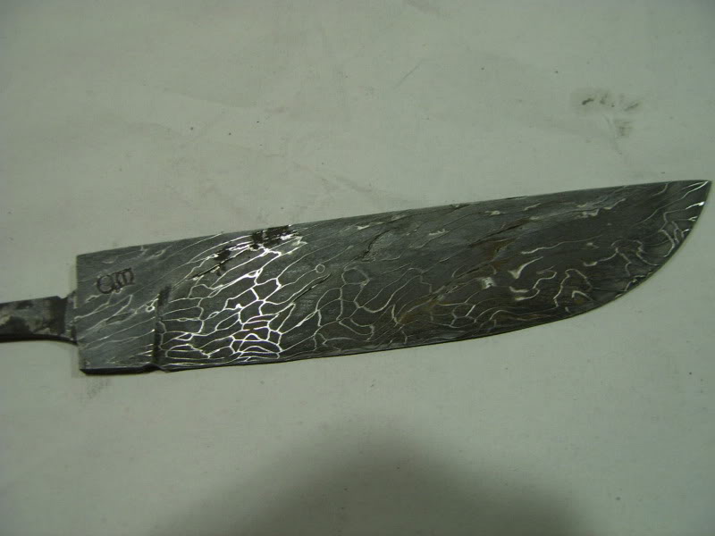 La hoja que seguidamente muestro, el damasco lo realizamos entre un artesano amigo y yo, la otra imagen se trata de damasco industrial.