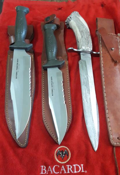 Pues gracias, la verdad esque ahi me pase un poco, porque lo que tengo es para utilizarlo y no para tenerlo de exposición, estos cuchillos son plenamente utilizables y te dan mucha confianza para rematar con ellos... o para cortar las ramas de una encina que te molesten en el puesto... o para lo que sea, tienen en total 43 centímetros de largo de los que 29/30 son de hoja... 7 Mm de grueso de hoja... vamos casi irrompibles... hay por hay algunos videos antiguos que decían bastante sobre la forma de trabajar de este cuchillero, todo un referente en sus tiempos y sus obras hay están para seguir disfrutandolas muchos años,,,