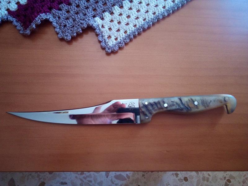 A mi me parece precioso, sin guarda como está, aunque el ancho de las cachas al llegar a la hoja puede hacer en parte esa función. El cuerno de carnero de esas cachas (al menos eso parece), con esas vetas, resulta muy atractivo y le da ese toque rural que me parece unido a estos cuchillos.