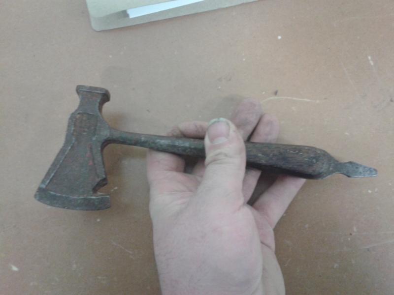 Me recuerda a una hacha, con pico, de acero fundido (no confundir con hierro fundido) que me regalaron cuando mi antigua empresa de almacenes frigoríficos cerró, gracias a las fatídicas olimpiadas de 1992 (os lo dice uno nacido en BCN).