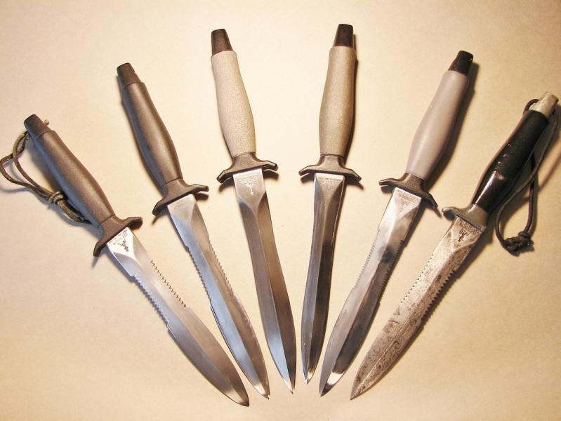 De izquierda a derecha, GERBER MARK II (1992) 440C, SOG SEAL 2K AUS8 SEKI-JAPAN (2000) y JONH EK COMMANDO SURGICAL STEEL (1978)...