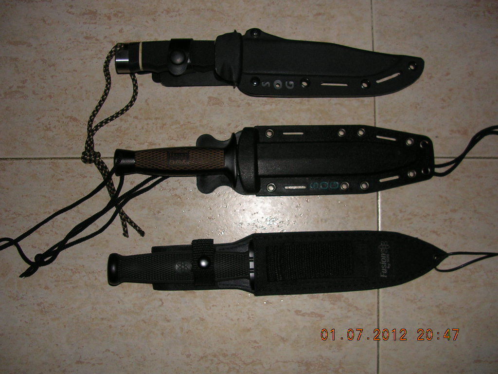 Y unas últimas fotos comparativas que muestran el grosor y tamaño del cuchillo respecto a mis dagas GERBER MARK II (2008) y JOHN EK COMMANDO (1984):