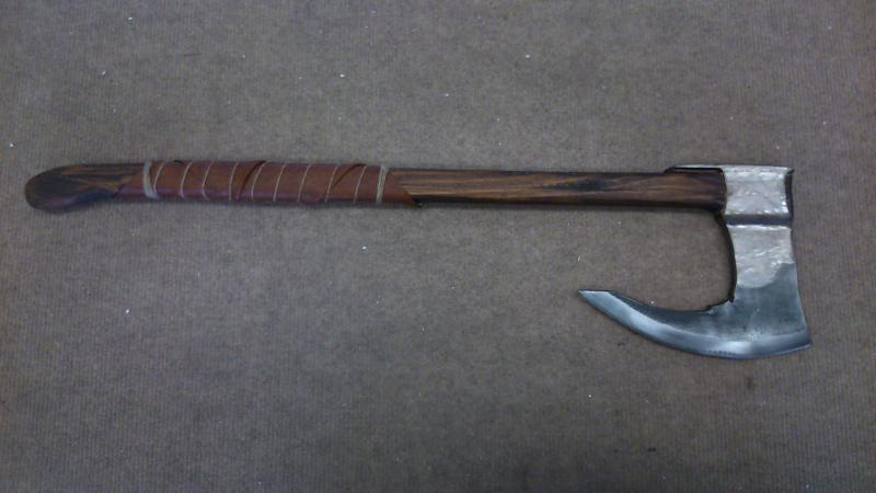 Nueva pieza con la hoja fabricada con acero de un disco circular para cortar madera. Es una hacha vikinga de 68cm en total.