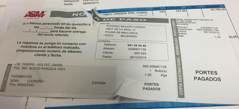 El lunes día 4 te ordenare una recogida con la agencia ASM y te solucionaremos el problema, por supuesto siempre a nuestro cargo.